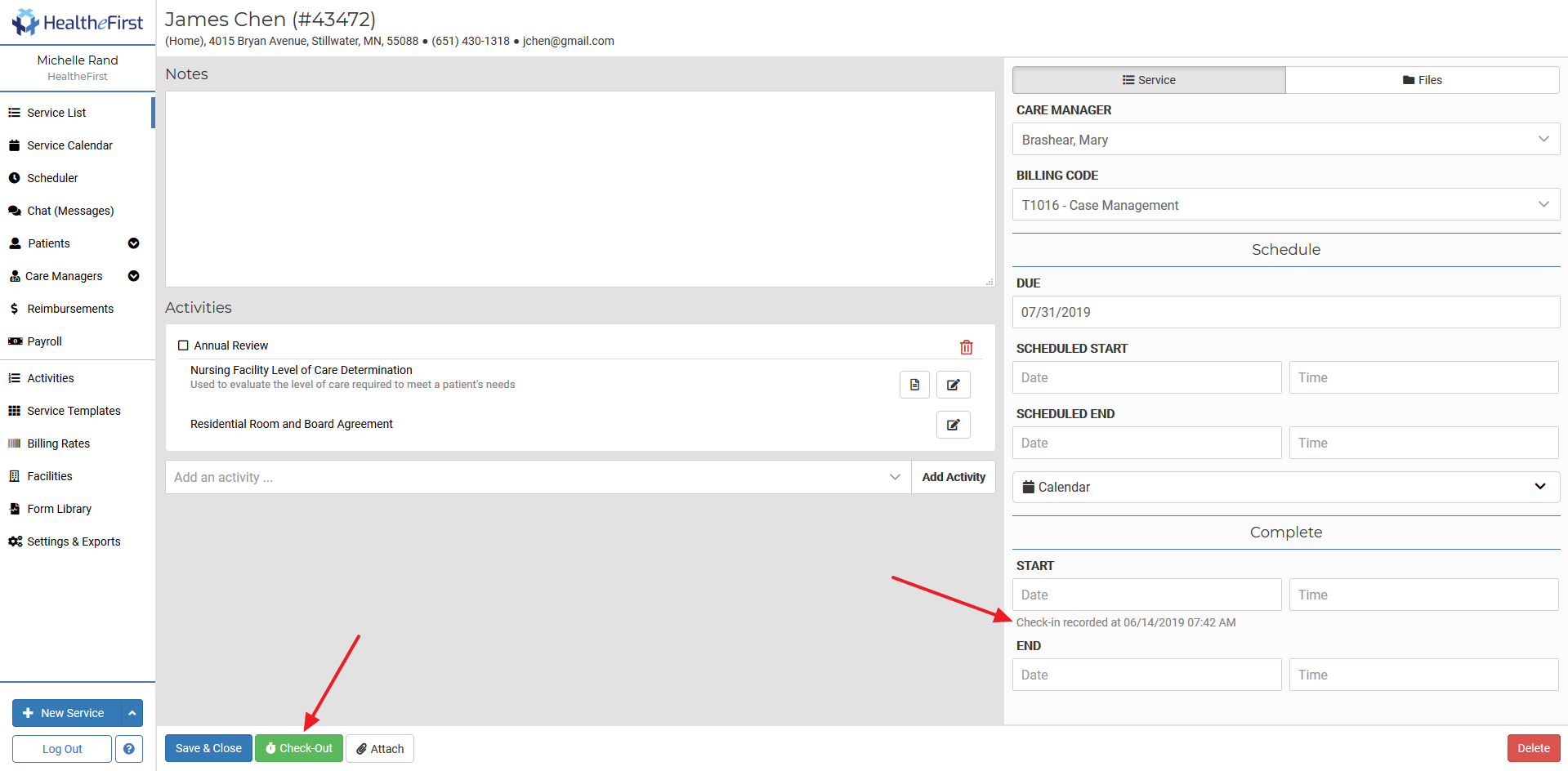 In the home healthcare space, Electronic Visit Verification (EVV) is a requirement for confirming that workers are where they are when they said they were there. To support that requirement, HealtheFirst has a check-in/check-out process that will record GPS coordinates and a timestamp at the start and end of a service.
